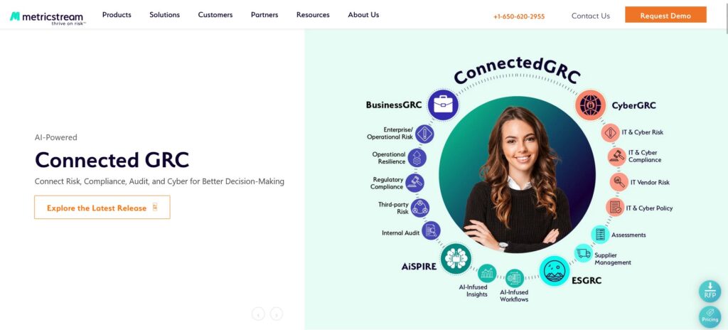 MetricStream is a comprehensive Governance, Risk, and Compliance (GRC) platform that provides the visibility you need to anticipate and assess risks, so you can take the appropriate remediation measures. It also helps organizations to take risk-aware decisions. With MetricStream, you get a centralized framework for tracking risks, automating workflows, and ensuring compliance with various industry standards.
